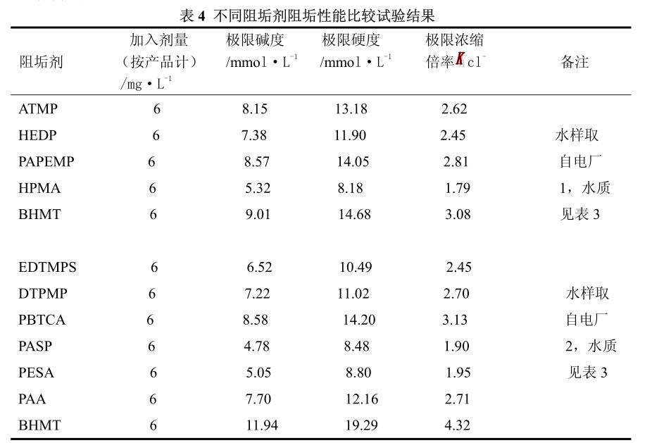 4 BHMT  阻垢性能試驗(yàn)內(nèi)容及結(jié)果